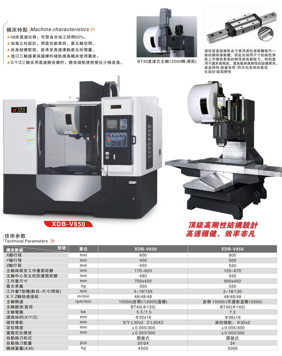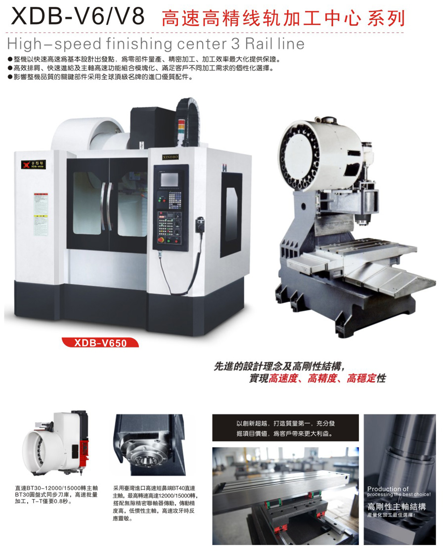 XDB-V10高速机是一款主要针对精密模具、零配件加工中心机,光机结构为目前国内外最先进-体式结构,